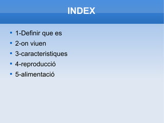 INDEX 1-Definir quees 2-on viuen 3-caracteristiques 4-reproducció 5-alimentació