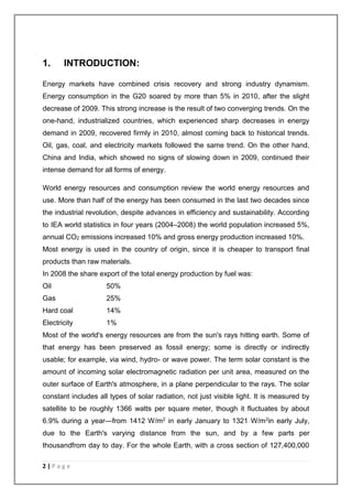 The document provides an overview of global energy consumption trends, highlighting a significant increase in energy demand in G20 countries and the continued reliance on renewable energy sources like wind, solar, and hydropower. It discusses the historical context of energy usage, the rise of wind power, and the potential for renewable energy to contribute significantly to future energy needs. It emphasizes the urgent necessity for energy security and the importance of diversifying energy sources amid rising fossil fuel costs and environmental concerns.