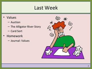 The document discusses setting goals using the DAPPS method. It explains that DAPPS stands for goals being Dated, Achievable, Personal, Positive, and Specific. It provides examples for each letter and emphasizes setting goals for life roles and dreams. Students will work on creating a life plan and select groups for a presentation on student services.
