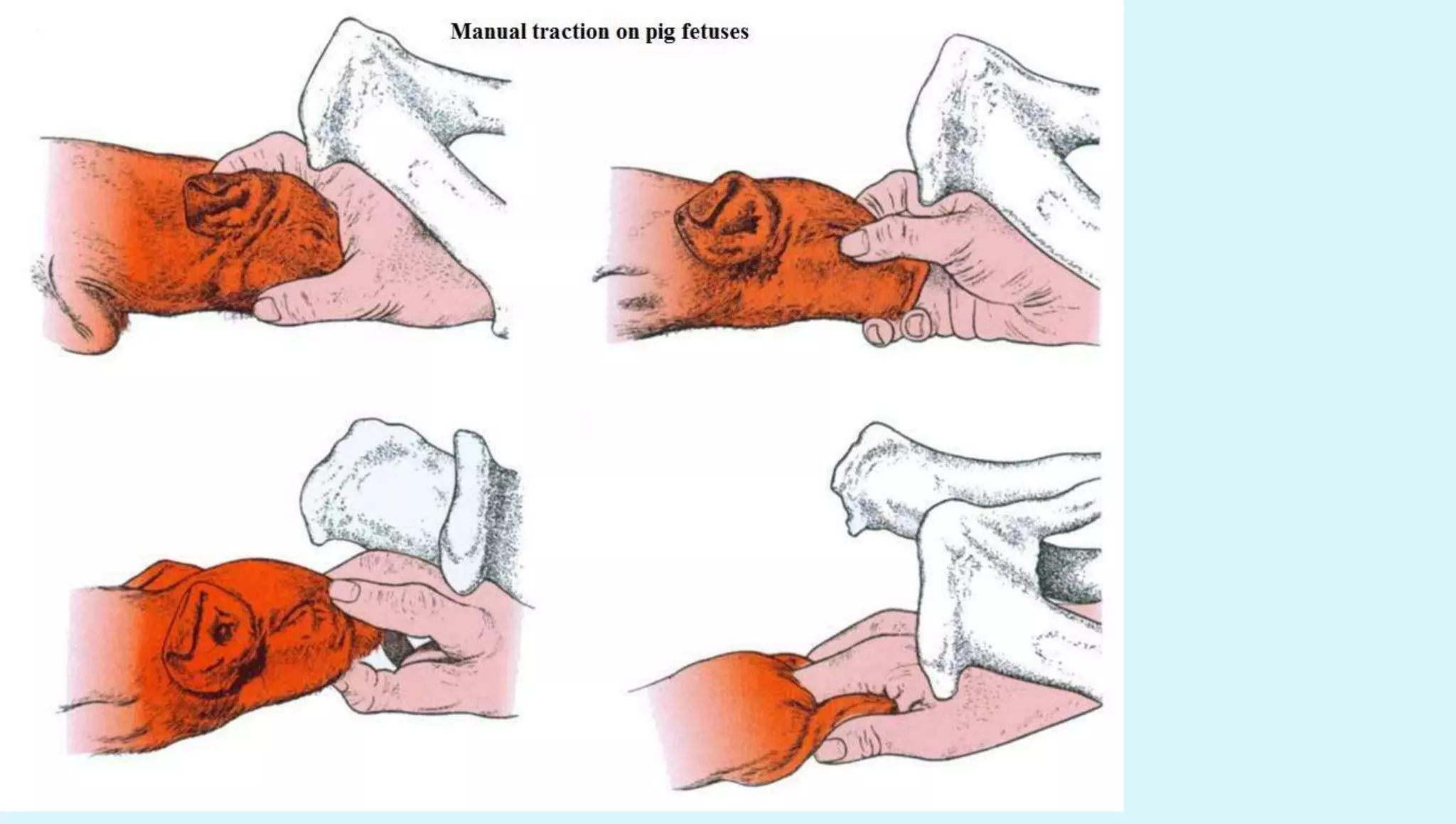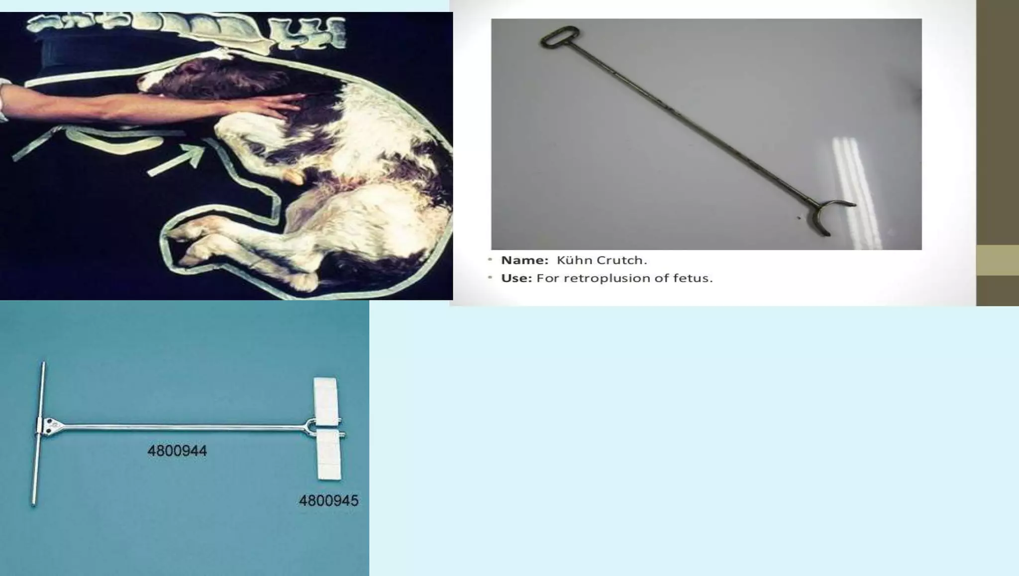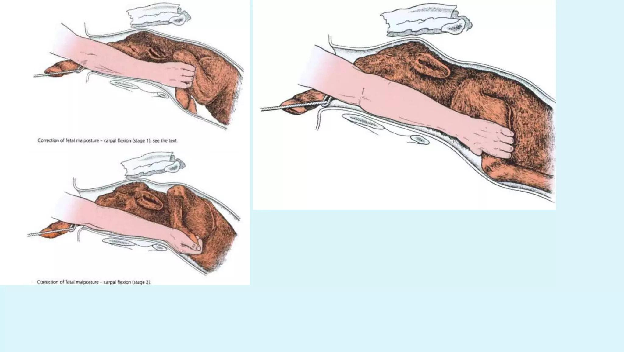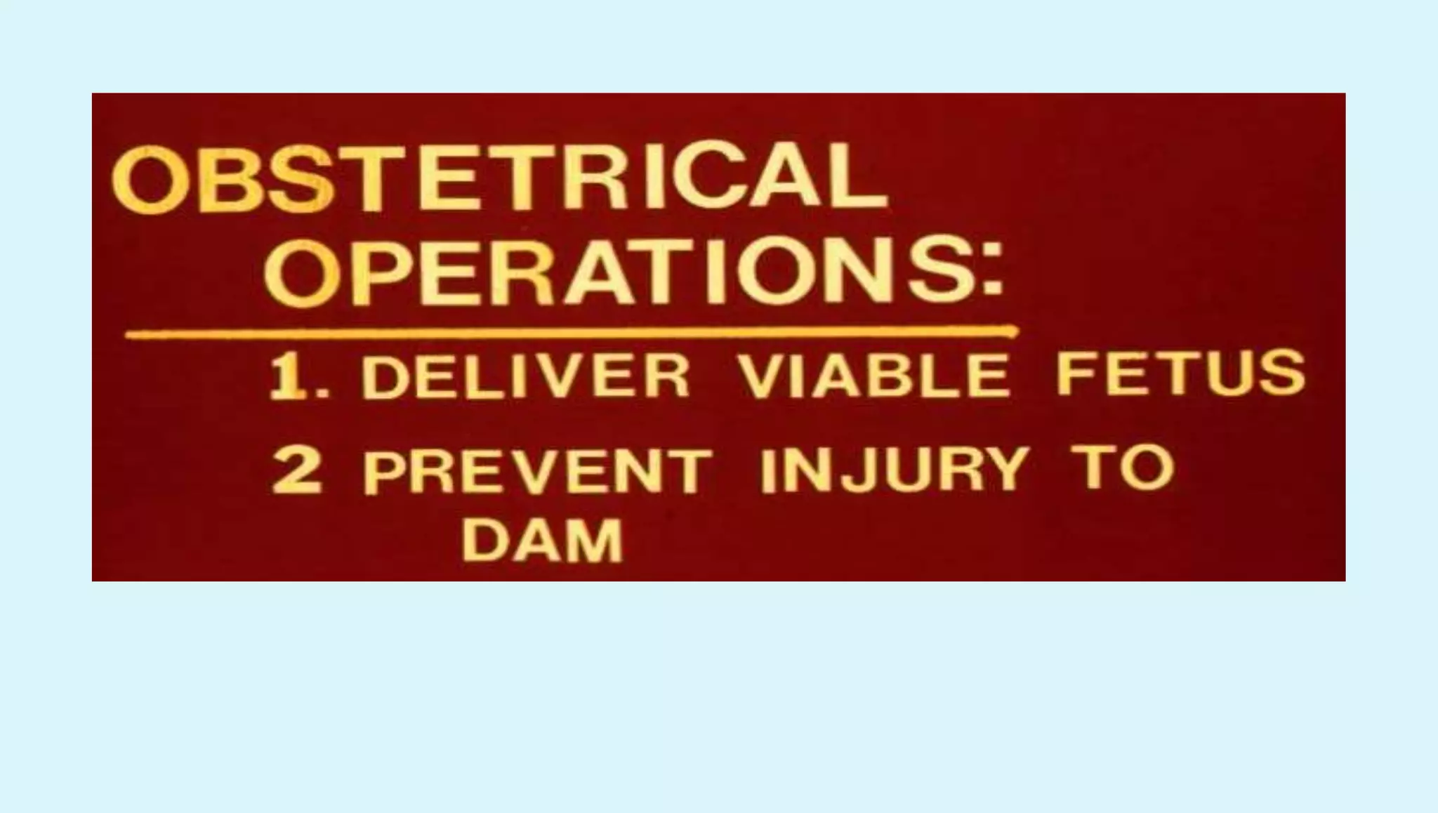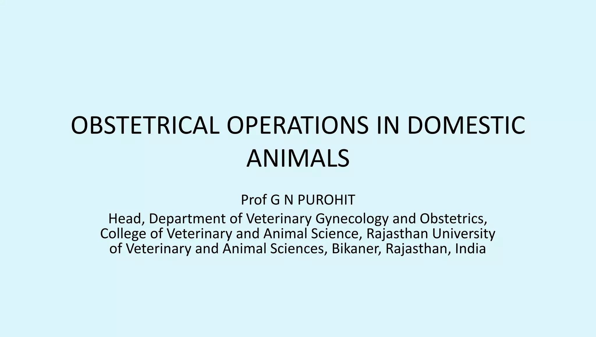 This document discusses obstetrical operations in domestic animals. It describes mutation procedures like repulsion, rotation, and version to correct fetal positioning. Forced extraction using ropes or chains is outlined. Fetotomy techniques like percutaneous and subcutaneous are explained to reduce fetal size. Caesarean section is mentioned as an alternative when assisted vaginal delivery is not possible within 15 minutes. Key points are emphasized for each species, including limiting fetotomy cuts in mares.