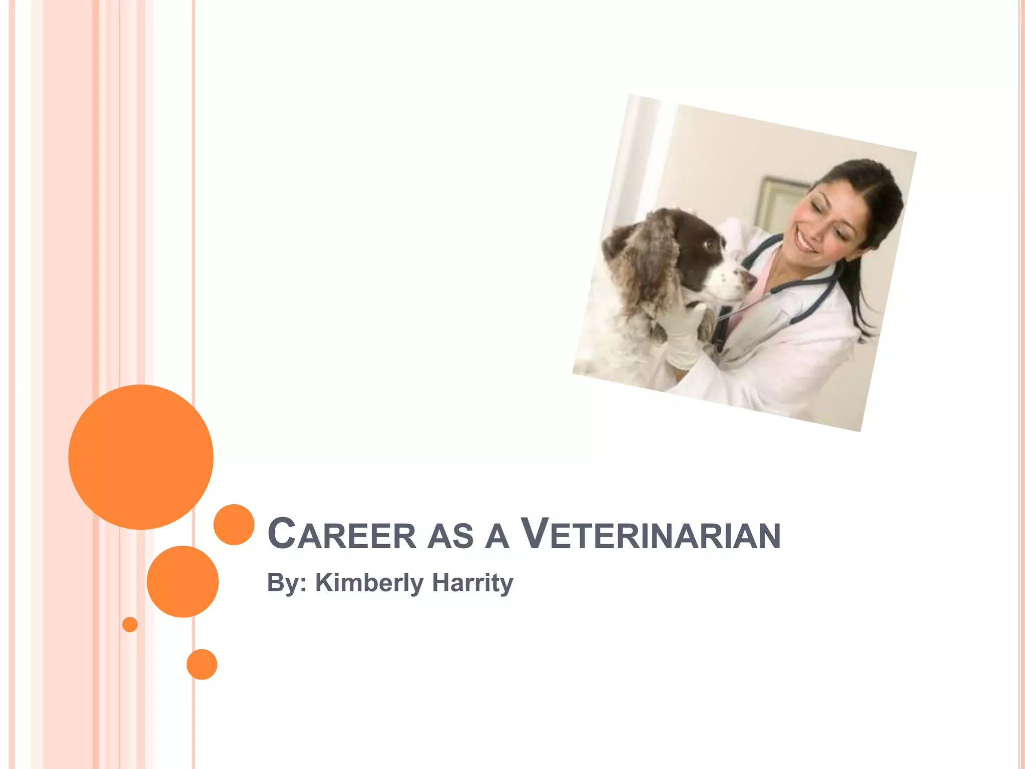 A career as a veterinarian involves treating sick and injured animals, performing surgeries, setting broken bones, and prescribing medicine. Veterinarians must complete high school courses in science and math, earn a bachelor's degree, and obtain a Doctor of Veterinary Medicine degree after four years of veterinary school. Starting salaries range from $44,150 to $79,050 annually, with potential to earn over $134,000. The job outlook for veterinarians is expected to grow faster than average through 2018 as the field expands by over 32%.