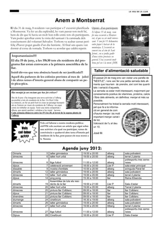 El dia 19 de juny, a les 19h30 tots els residents del pro- general. Una excursió molt