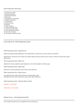 VHDL Programlama 2014 - Eğitim Yeri