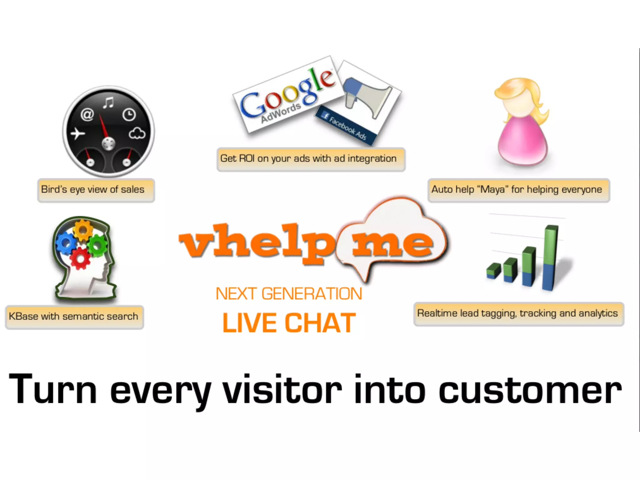 - Vhelp is a next generation live chat tool that can be embedded on websites and Facebook pages to allow visitors to chat with agents in real time and help convert more leads and sales.