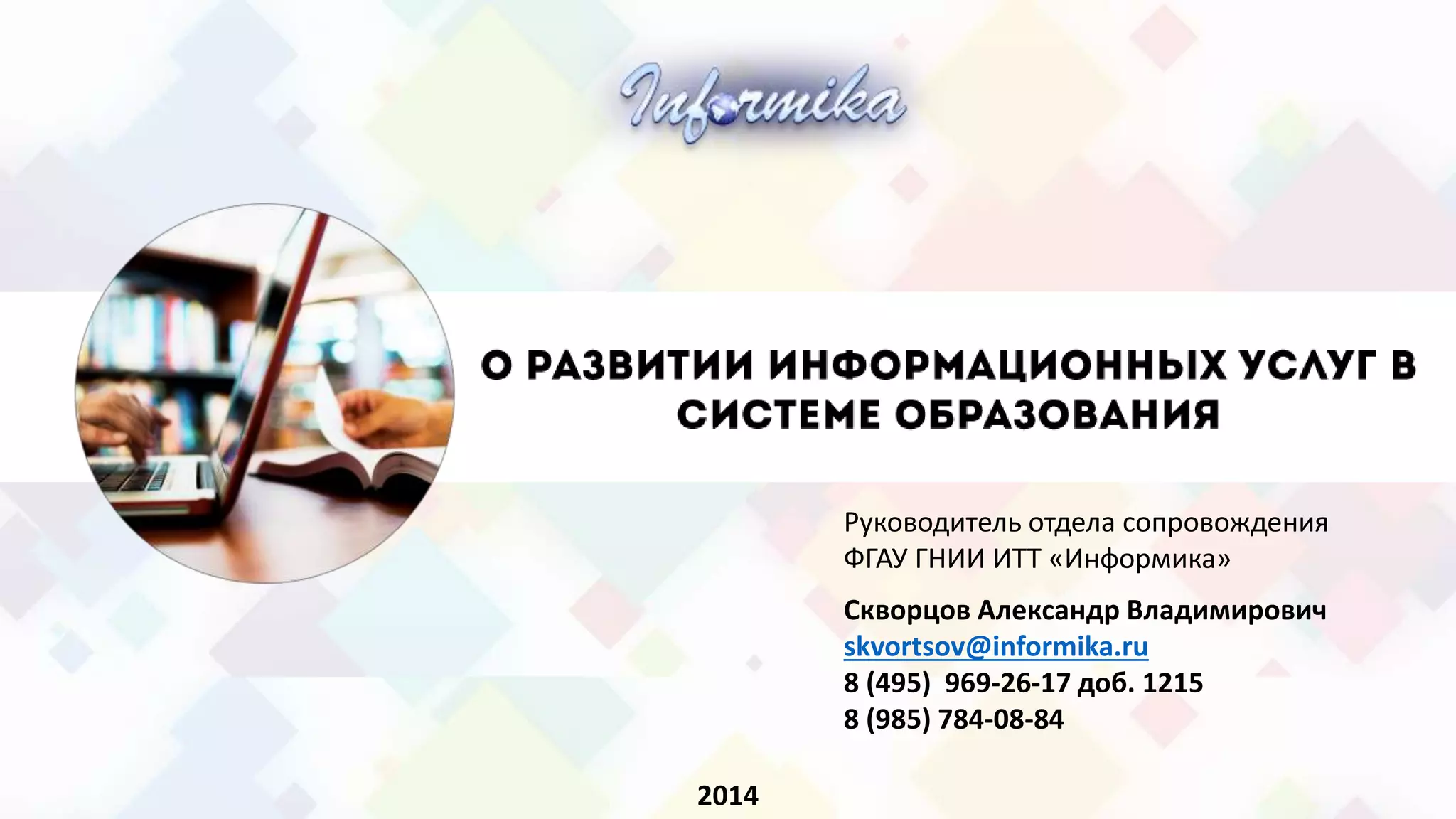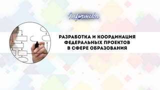 Документ описывает роль ФГАУ ГНИИ ИТТ «Информатика» в информатизации образования в России, включая участие в разработке и внедрении систем электронной очереди, а также мониторинг и аудит информационных систем. Указаны ключевые поручения правительства и президента, касающиеся предоставления государственных услуг в электронном виде, а также план мероприятий по модернизации и оптимизации этих процессов. Основные цели включают создание единой федеральной системы учета контингента обучающихся и улучшение доступа к образовательным услугам через электронные платформы.