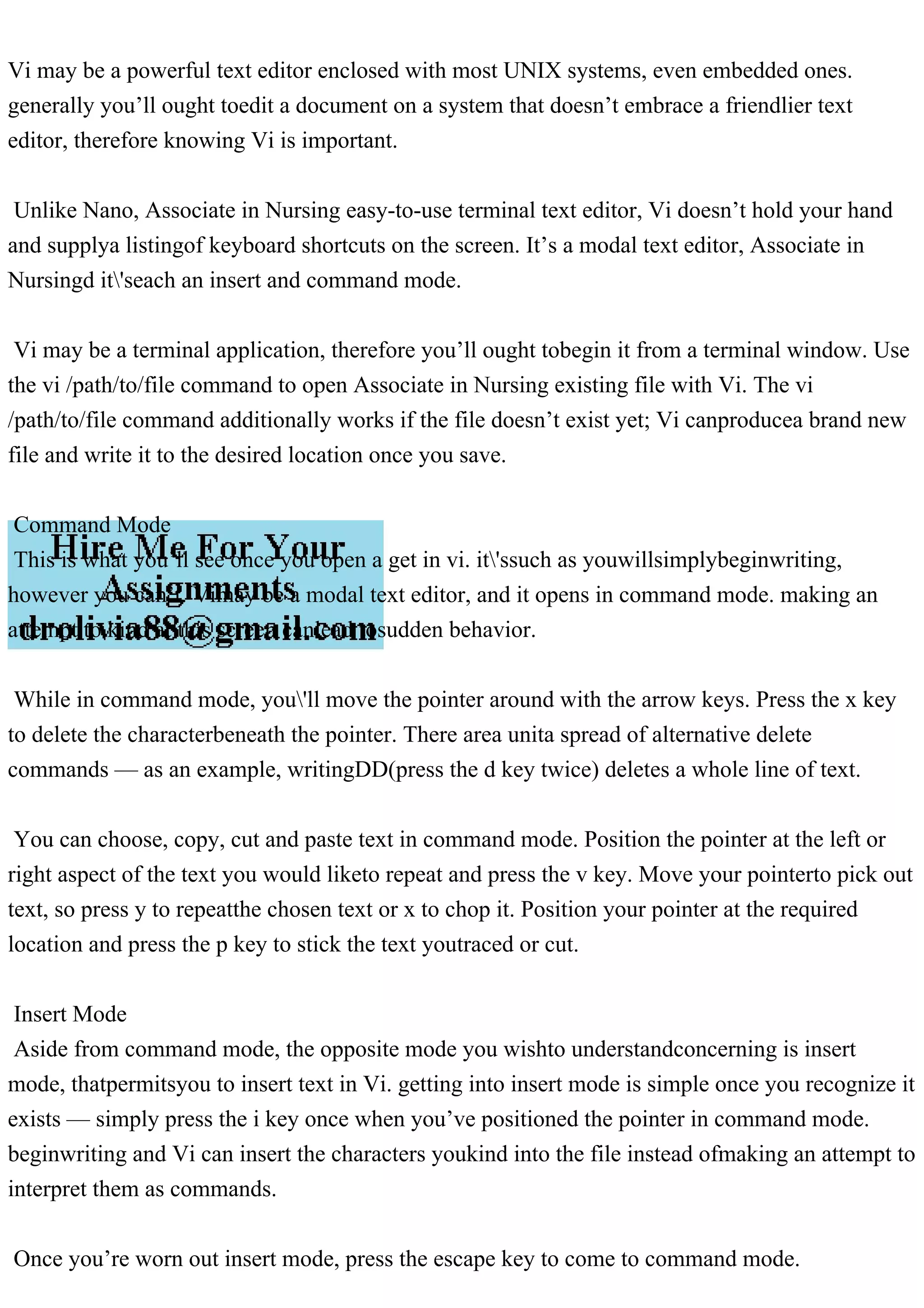 The document provides an overview of the vi text editor, which is essential for editing on Unix systems lacking user-friendly alternatives. It explains the two modes of vi—command and insert mode—and outlines basic commands for navigation, text manipulation, and file management. Readers are guided on opening files, text editing functions, and saving or quitting the editor.