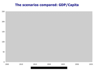 3. While technology can help reduce this impact, changes are also needed to address the scale of resource use and production, as well as growing inequality between rich and poor countries. The document presents some scenarios and policies for managing economies without continuous growth.
