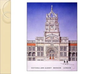 The Victoria and Albert Museum is located in South Kensington, London. It was established in 1852 and has a collection size of over 4.6 million objects. The museum has galleries dedicated to various subjects including architecture, Asia, British art, ceramics, fashion, furniture, glass, metalwork, paintings, prints, sculpture, and textiles. Notable works in the collection include portraits by Botticelli, sculptures by Canova, and Islamic artifacts such as a 10th century rock crystal ewer.