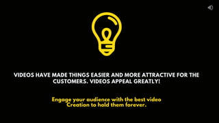 The document highlights the significance of video creation in digital marketing, emphasizing its ability to engage audiences and enhance brand visibility. It outlines various types of videos offered by Republic, including corporate, promotional, testimonial, and aerial videos, showcasing their efficacy in conveying messages and boosting conversions. The text also stresses the importance of professional video production and targeted marketing strategies to maximize reach and impact.