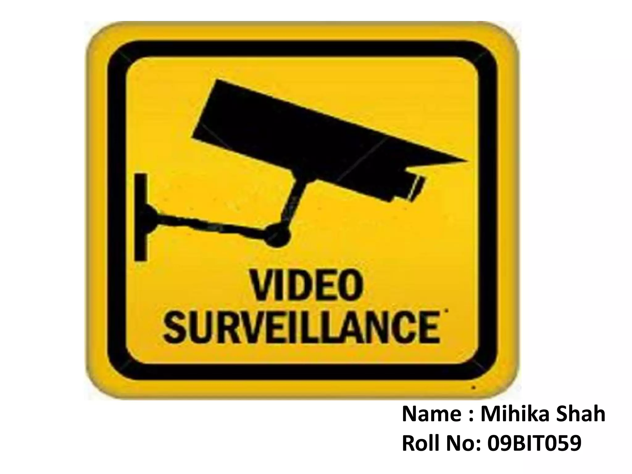 The document provides information about Mihika Shah's roll number and then discusses the history and types of surveillance systems including analog CCTV cameras, IP cameras, and their components and architecture. It describes the advantages and disadvantages of analog versus IP cameras. It also discusses how to configure an IP camera and provides examples of video surveillance applications in farms.