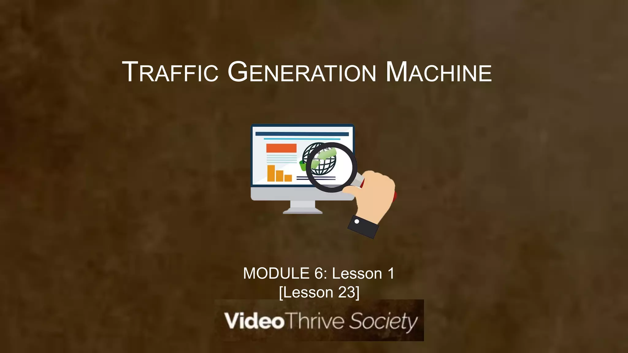 TRAFFIC GENERATION MACHINE](https://image.slidesharecdn.com/videothrivesocietymodule6-lesson1-170309233401/75/Video-Thrive-Society-Module-6-Lesson-1-1-2048.jpg)