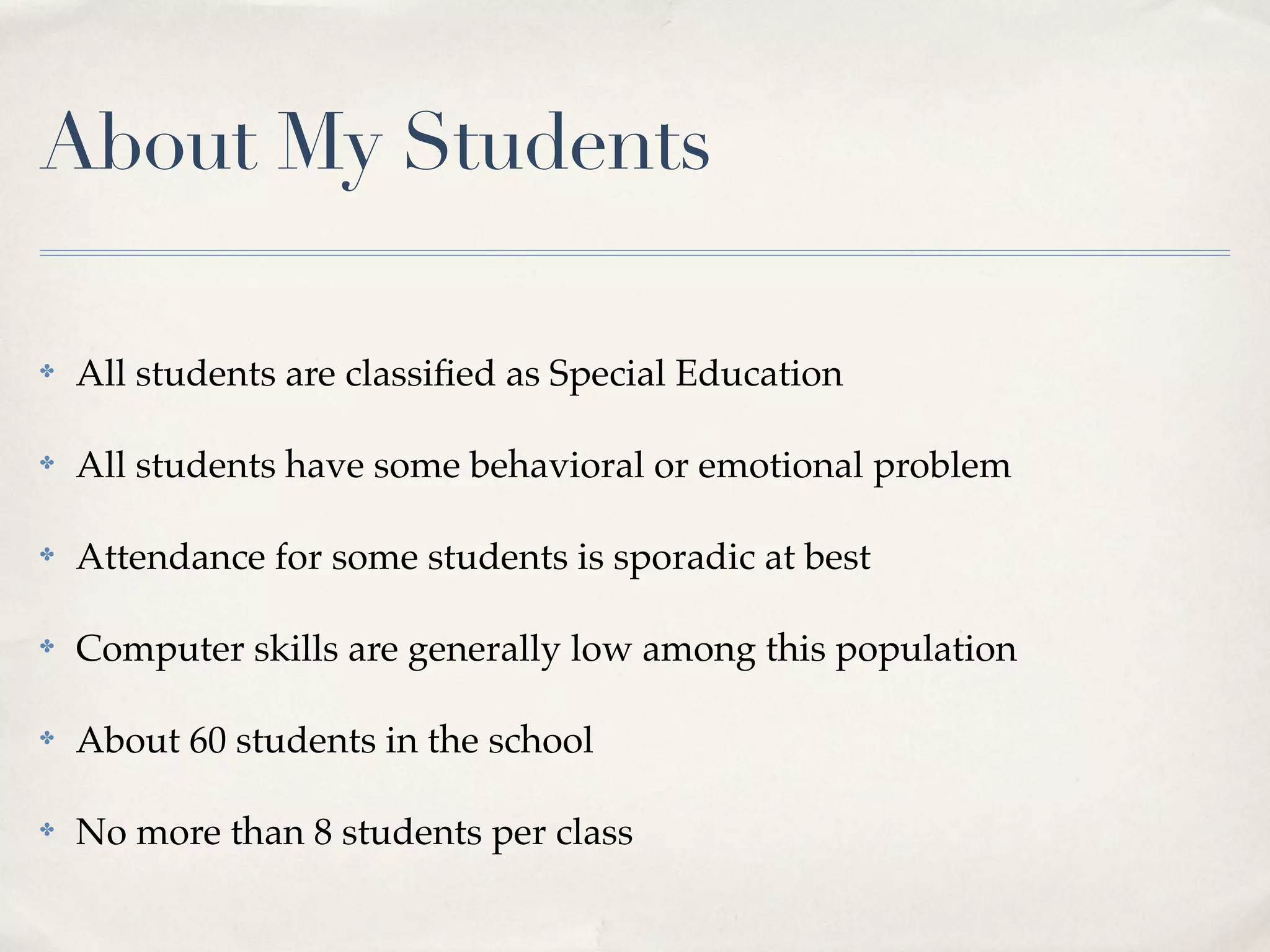The document discusses using video tutorials to teach lessons to special education students with behavioral issues. It notes the students have low attention spans, miss lessons frequently, and struggle to transfer information from the board. The video lessons are short, available anytime, and allow creative projects. Results showed students were more engaged, fewer behavioral issues, higher achievement, and teachers could provide more individual help.