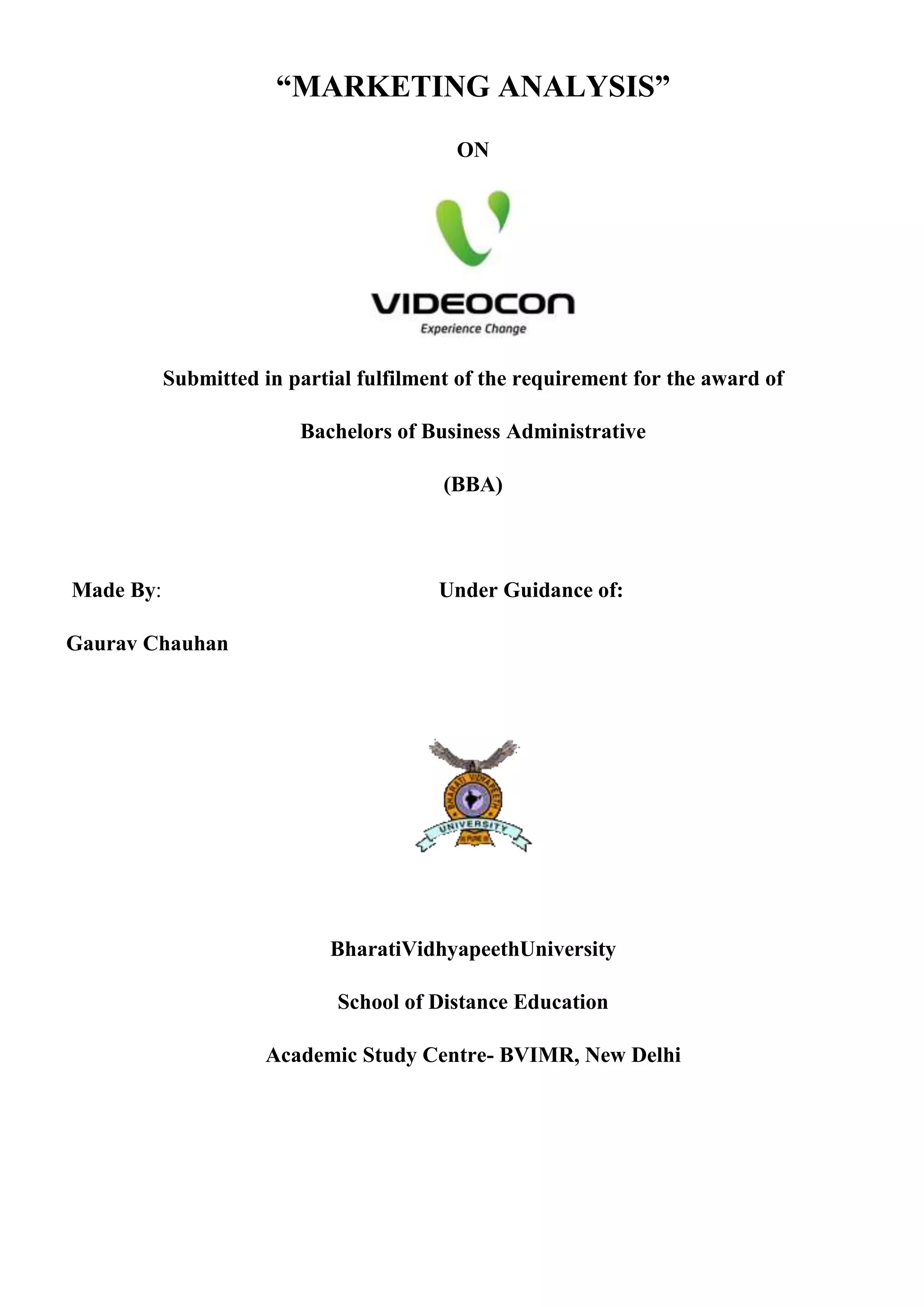 The document appears to be a marketing analysis report for Videocon Industries Ltd, an Indian consumer electronics and home appliances company. It provides an overview of Videocon's business sectors, organizational structure, production processes, and marketing strategies. The analysis also examines the consumer electronics industry, Videocon's competitors, and performs a SWOT analysis of the company.