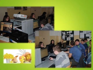 The document discusses a videoconference call held on Easter between Nové Mesto n.V. and Toruń where participants prepared a table setting and communicated using Twinspace before saying goodbye.