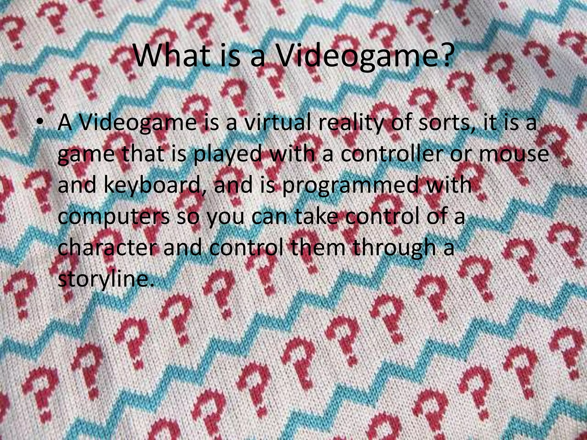 Videogames are games played using a controller, mouse, or keyboard connected to a computer or gaming system. There are different genres of videogames like role-playing games (RPGs), first-person shooters (FPS), platformers, and action-adventure games. Popular videogame systems include the Xbox 360, PlayStation 3, and Wii, while popular game series are Final Fantasy, Legend of Zelda, Super Mario, Metal Gear, and Halo. Videogames provide entertainment and escapism from reality.