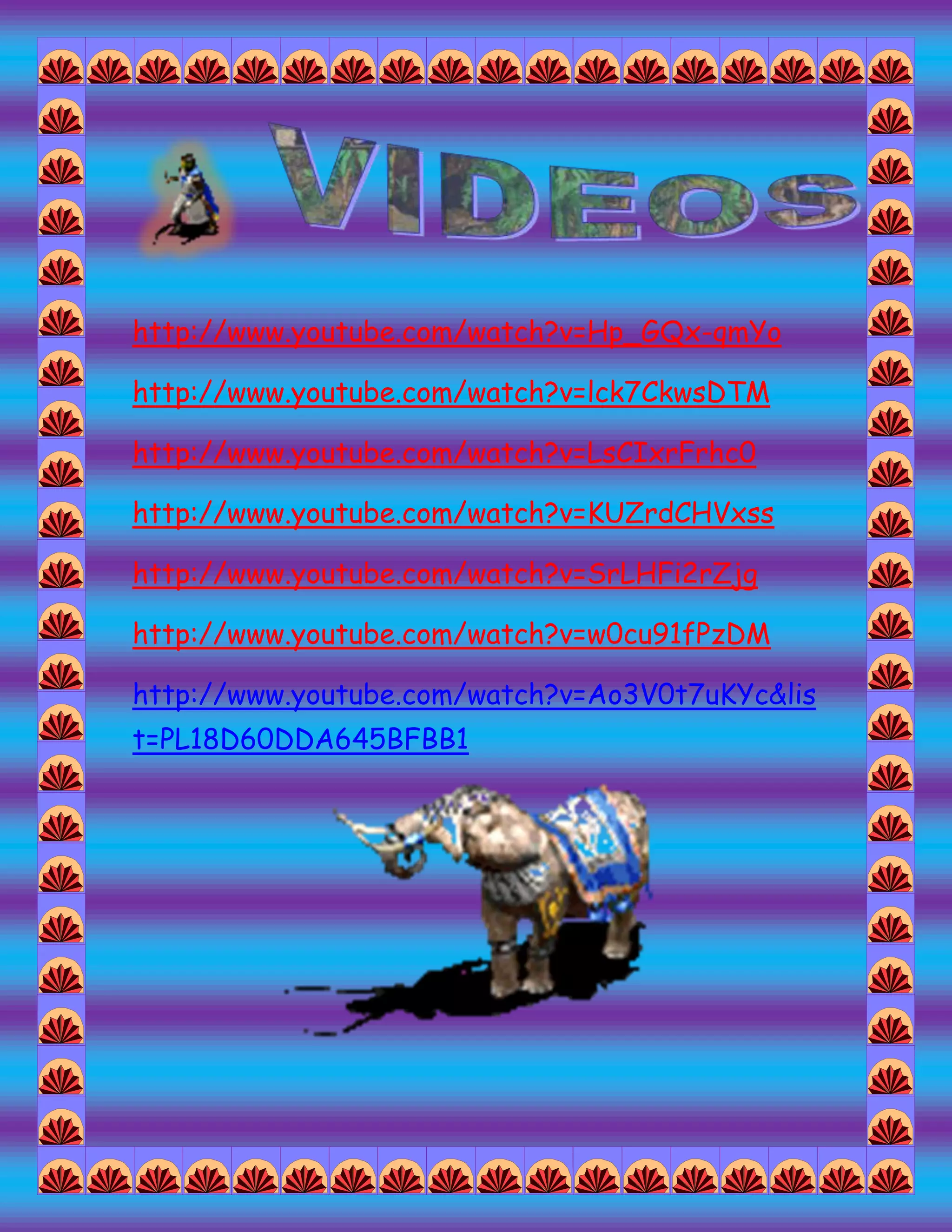 The document contains links to 7 YouTube videos but no other context or information. As such, it is not possible to provide an accurate high-level summary in 3 sentences or less since the content of the videos is unknown.