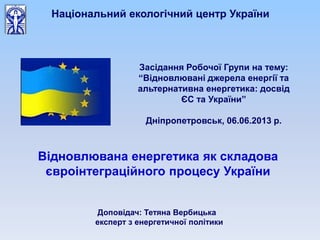Засідання Робочої Групина тему «Відновлювані джерела енергії та альтернативна енергетика: досвід ЄС та України», 6 червня 2013