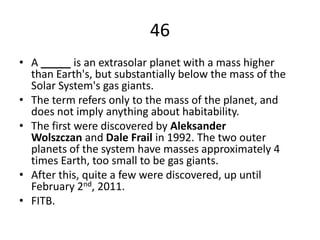 The first werediscovered by AleksanderWolszczan and Dale Frail in 1992. The two outer planets of the system have masses approximately 4 times Earth, too small to be gas giants.