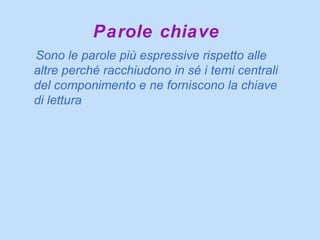 Il documento discute le scelte lessicali e sintattiche nella poesia, evidenziando il concetto di 'scarto linguistico' e l'importanza delle parole chiave nel trasmettere temi centrali. Viene anche esaminato l'uso di figure retoriche come onomatopea, paronomasia e metafora, che arricchiscono il messaggio poetico. Questi strumenti espressivi non solo abbelliscono il testo, ma sollecitano una maggiore partecipazione del lettore nella comprensione.