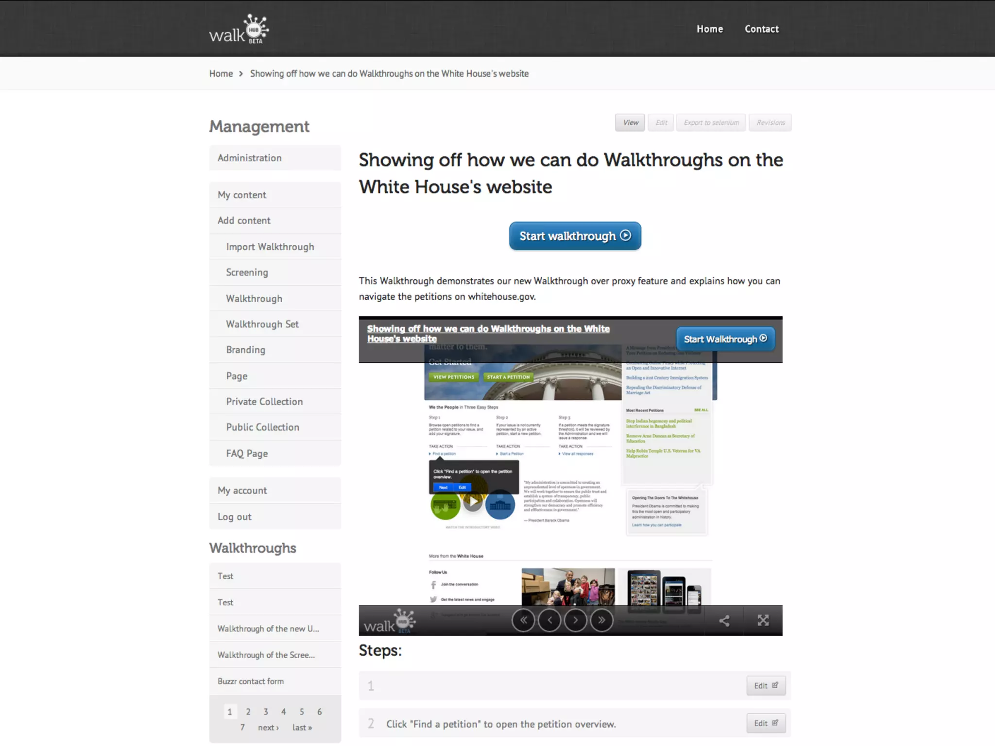 The document discusses the potential of walkthroughs for enhancing user documentation, highlighting their interactive, visual, and editable features. It addresses common challenges in traditional documentation and proposes a solution by merging demonstration, testing, and documentation into a single automated process. The open-source initiative aims to create a platform called Walkhub, inviting support and engagement from users.