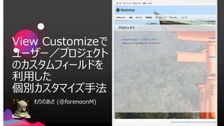 View Customizeで ユーザー/プロジェクト のカスタムフィールドを 利用した 個別カスタマイズ手法 もりのあさ (@forenoonM)