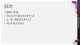JensMartensson • 目的と手段 • プロジェクト別のカスタマイズ •