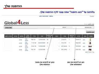 בלחיצה על " הצג הזמנה " אתה עובר לדף ההזמנה שלך . ההזמנה שלך כאן יש להקיש את שם המשתמש שלך וכאן יש להקיש את מספר הסיסמא שלך - 3.