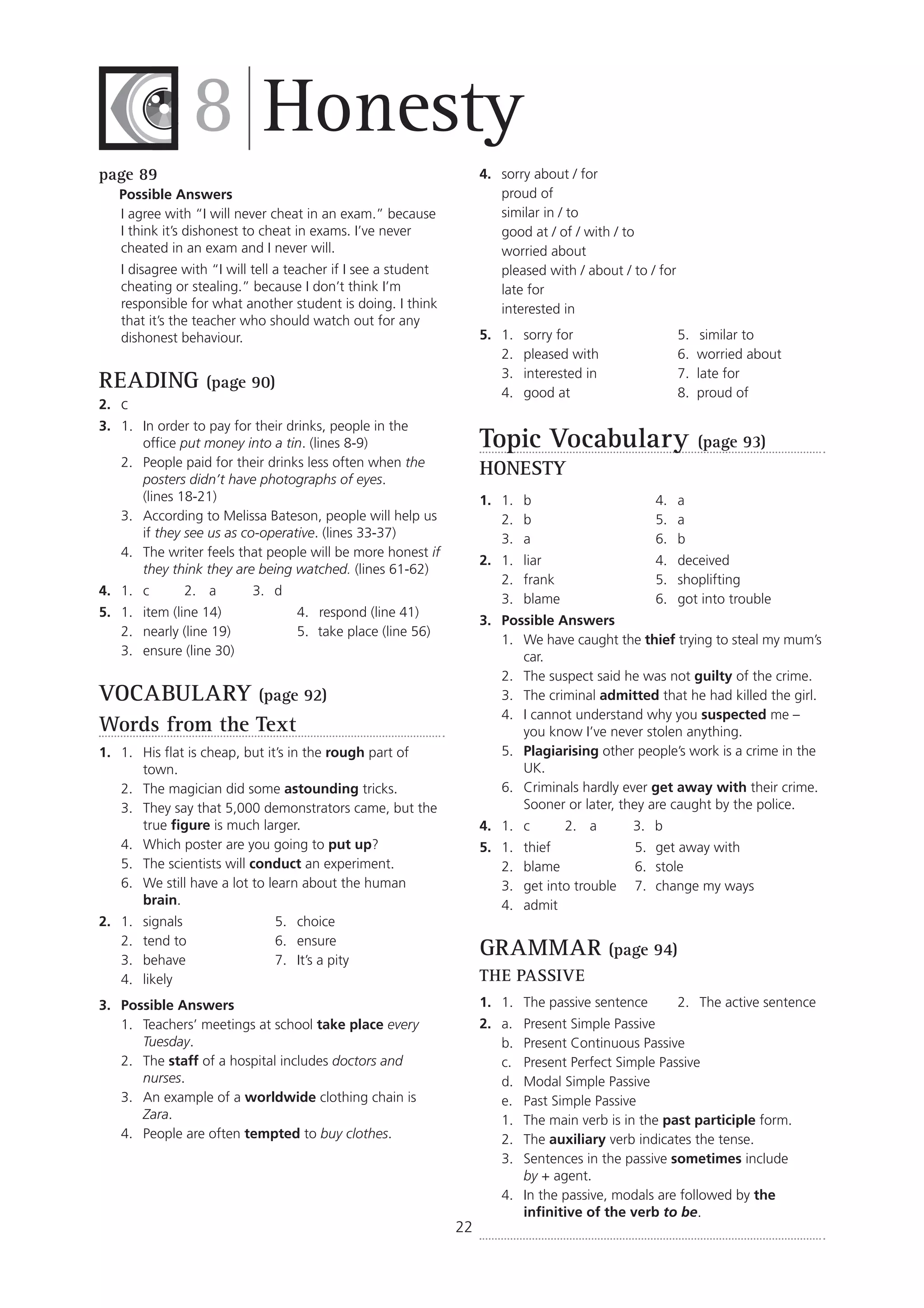 The document is a reading comprehension worksheet that contains multiple choice and short answer questions about a passage on honesty. It discusses an experiment where wallets were left in public places to see if people would return them. The key details are that most people, especially women, returned the wallets, though young people were the least likely to do so.