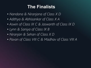 The document details a quiz conducted during a vigilance awareness week, featuring a variety of questions across multiple subjects including history, politics, and sports. Finalists from different classes participated, competing in 5 rounds that tested their knowledge on diverse topics. Key figures and events are highlighted, along with answers and additional trivia throughout the document.