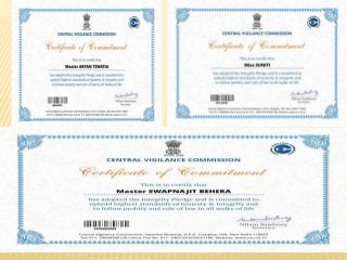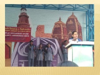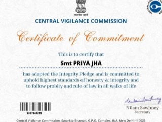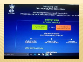 The document outlines the Vigilance Awareness Week aimed at promoting integrity and preventing corruption in India, detailing the roles and functions of the Central Vigilance Commission (CVC). It describes the processes for lodging complaints and seeking information under the Right to Information Act, as well as the protection measures for whistleblowers. The document emphasizes the importance of vigilance consciousness and administrative action to combat corruption effectively.