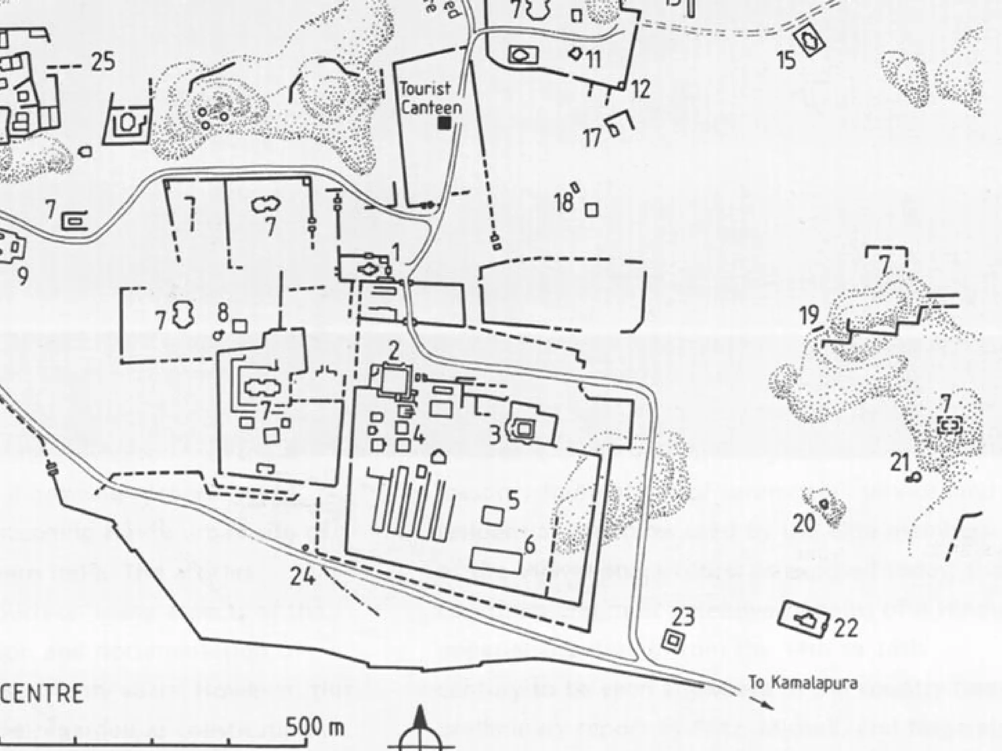 3) The Hazara Rama Temple in the Royal Centre was used by the royal family and features four massive black stone pillars and reliefs of court scenes and Krishna.