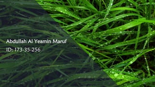 This 3 slide presentation introduces a village scenery graphics project in C programming. It includes slides that define village scenery, show the included graphics library, define user functions, and demonstrate elements of a village scene like the sky, buildings, nature, transportation, and people through graphics code examples. The final slide thanks the audience and asks for any questions.