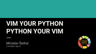 The document discusses using Vim and Python together effectively. It provides tips for customizing Vim through options, mappings, and plugins to enhance productivity. Popular plugins are recommended for linting, autocompletion, fuzzy finding, Git integration, and more. Using Neovim over Vim is suggested for its modern features like asynchronous operations and Python integration. Setting up dotfiles is presented as a way to manage Vim/Neovim configuration across systems.