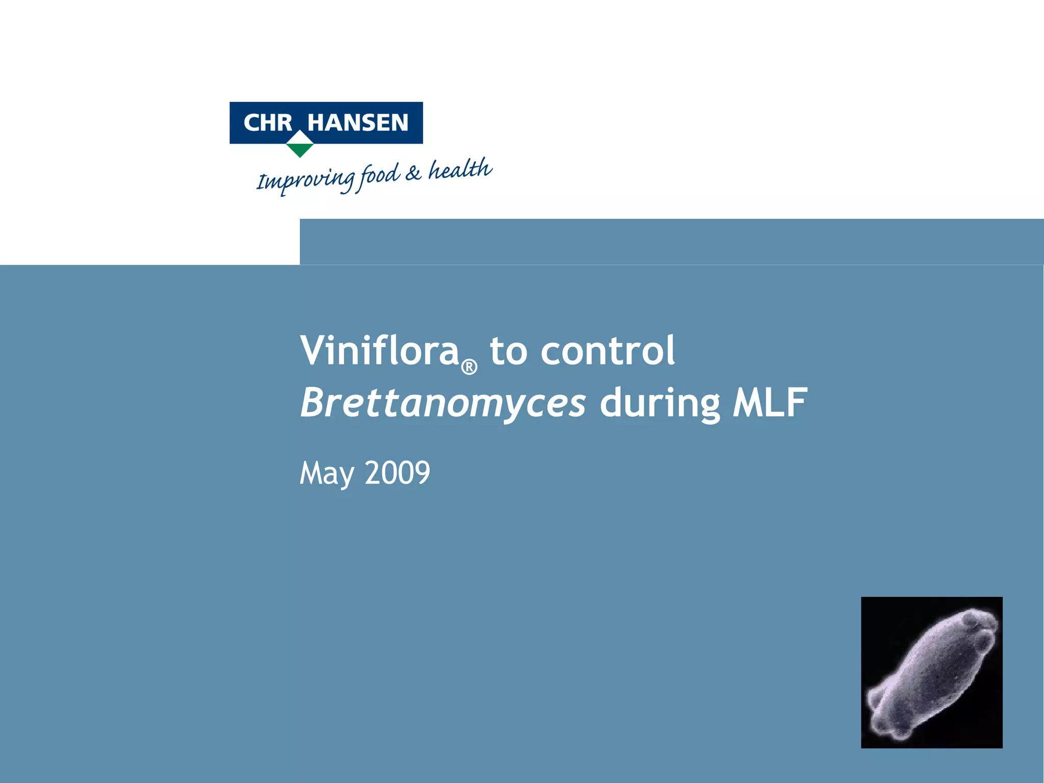 This document discusses Brettanomyces yeast which can contaminate wine and produce off-flavors. Malolactic fermentation (MLF) is identified as a critical stage for Brettanomyces control. Inoculating wine with Viniflora during MLF can help control the start and speed of MLF, inhibit Brettanomyces growth, and reduce the window of opportunity for Brettanomyces contamination compared to spontaneous MLF. A case study demonstrates how spontaneous MLF led to 20 days of increased Brettanomyces risk versus inoculated MLF with Viniflora which began MLF immediately with no risk period. Other factors like commercial yeast strains and winery hygiene also impact Brettanomyces control