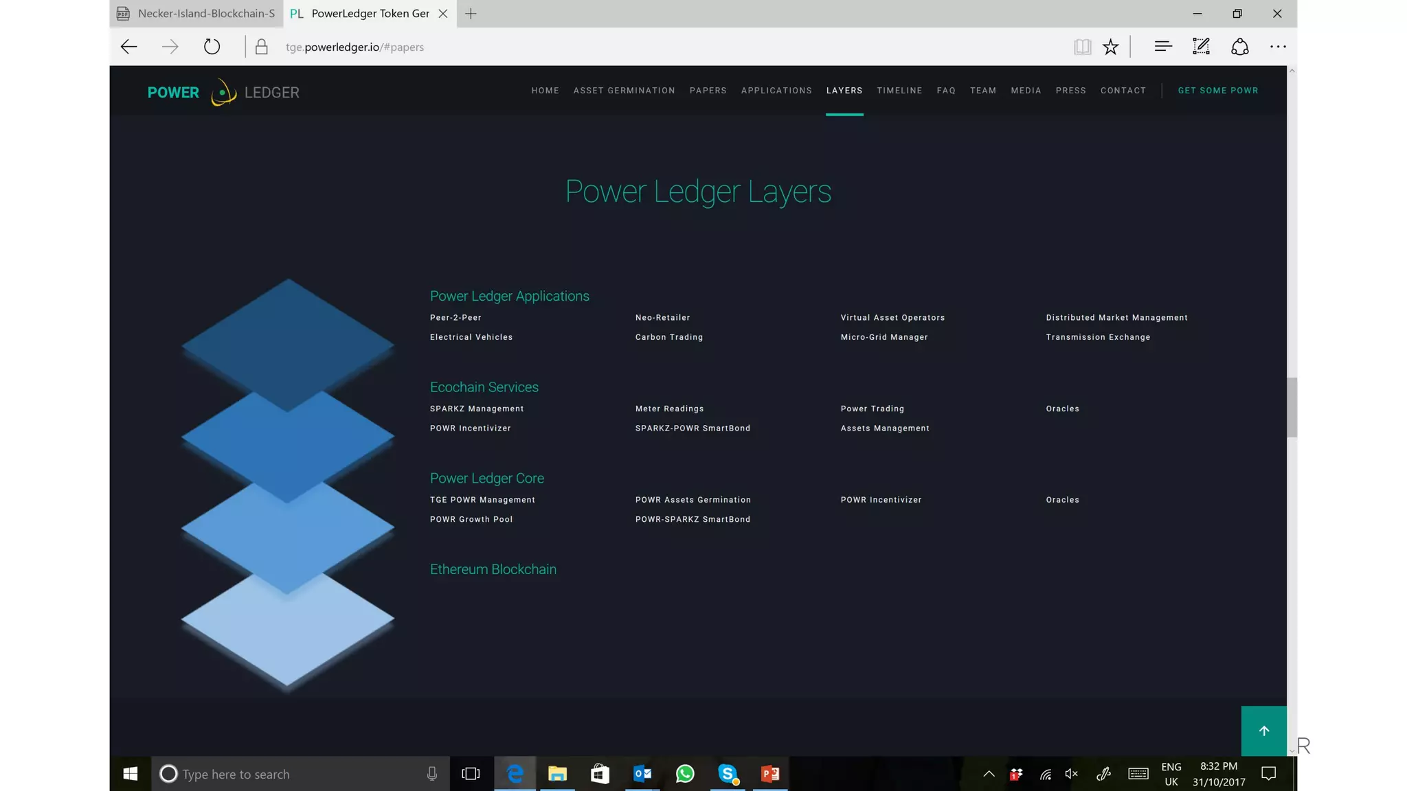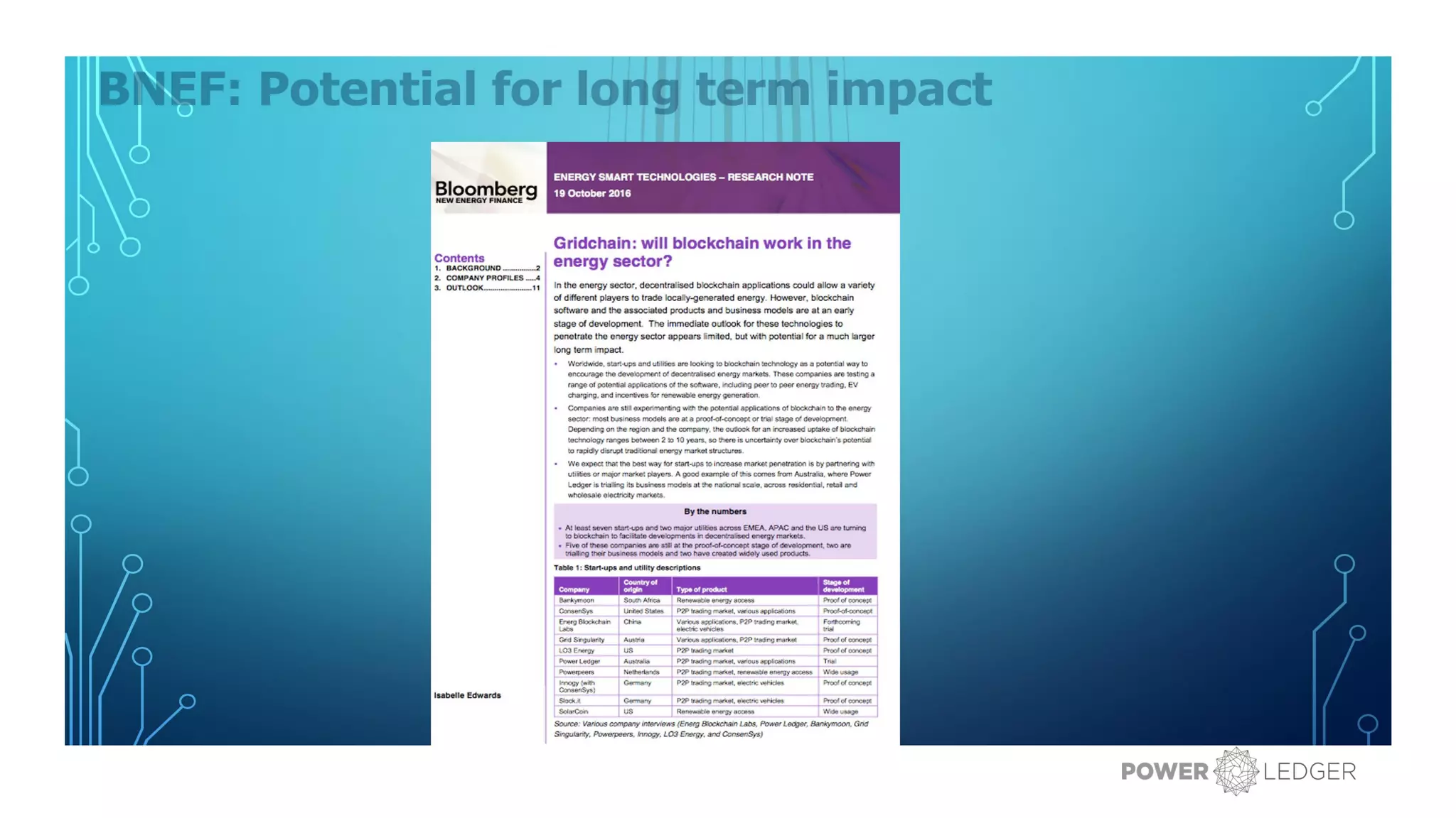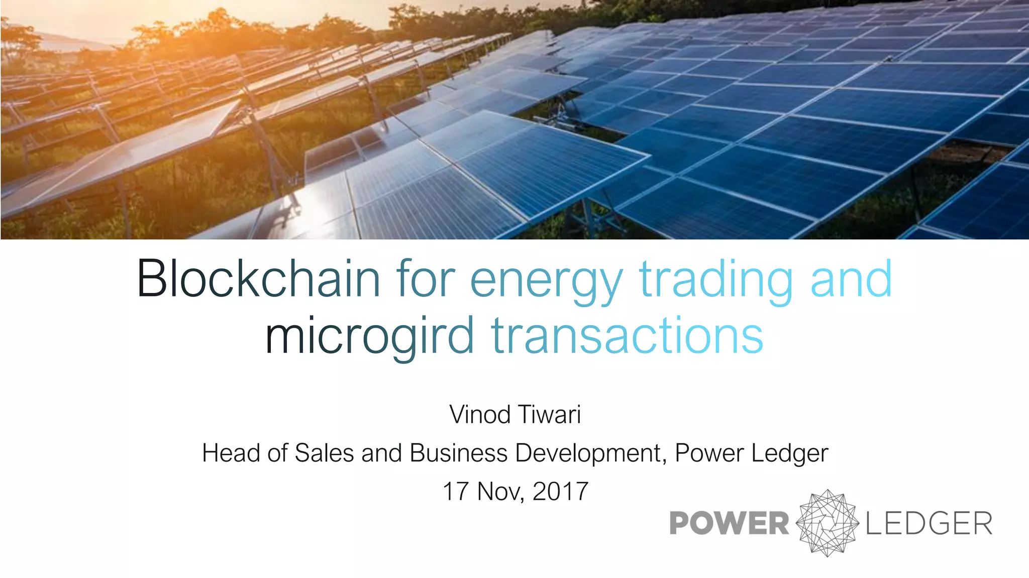 The document discusses Power Ledger, a blockchain-enabled peer-to-peer energy trading platform. It describes how Power Ledger works, allowing consumers to trade electricity locally through a distributed ledger in a secure and transparent way. This helps encourage renewable energy adoption, reduces costs for consumers, and preserves the value of existing grid infrastructure. The blockchain ensures fast, low-cost settlements of transactions without a centralized authority. Microgrids and virtual power plants are also discussed as applications of this local energy trading.