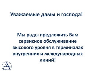 Документ описывает услуги VIP-сектора международного аэропорта Волгоград, предоставляющие высокий уровень сервисного обслуживания для пассажиров. Включены услуги VIP-зала, бизнес-зала и сопровождения пассажиров, а также информация о регистрации и комфорте. Основное внимание уделяется безопасности, конфиденциальности и экономии времени клиентов.