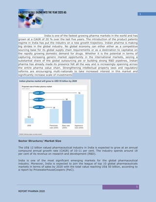 1) By 2020, the Indian pharmaceutical industry is projected to grow to $50 billion and become one of the top 10 pharmaceutical markets globally, driven by strong domestic demand and increased exports.