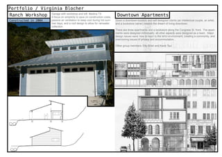 The document summarizes several of Virginia Blocher's architectural projects:
