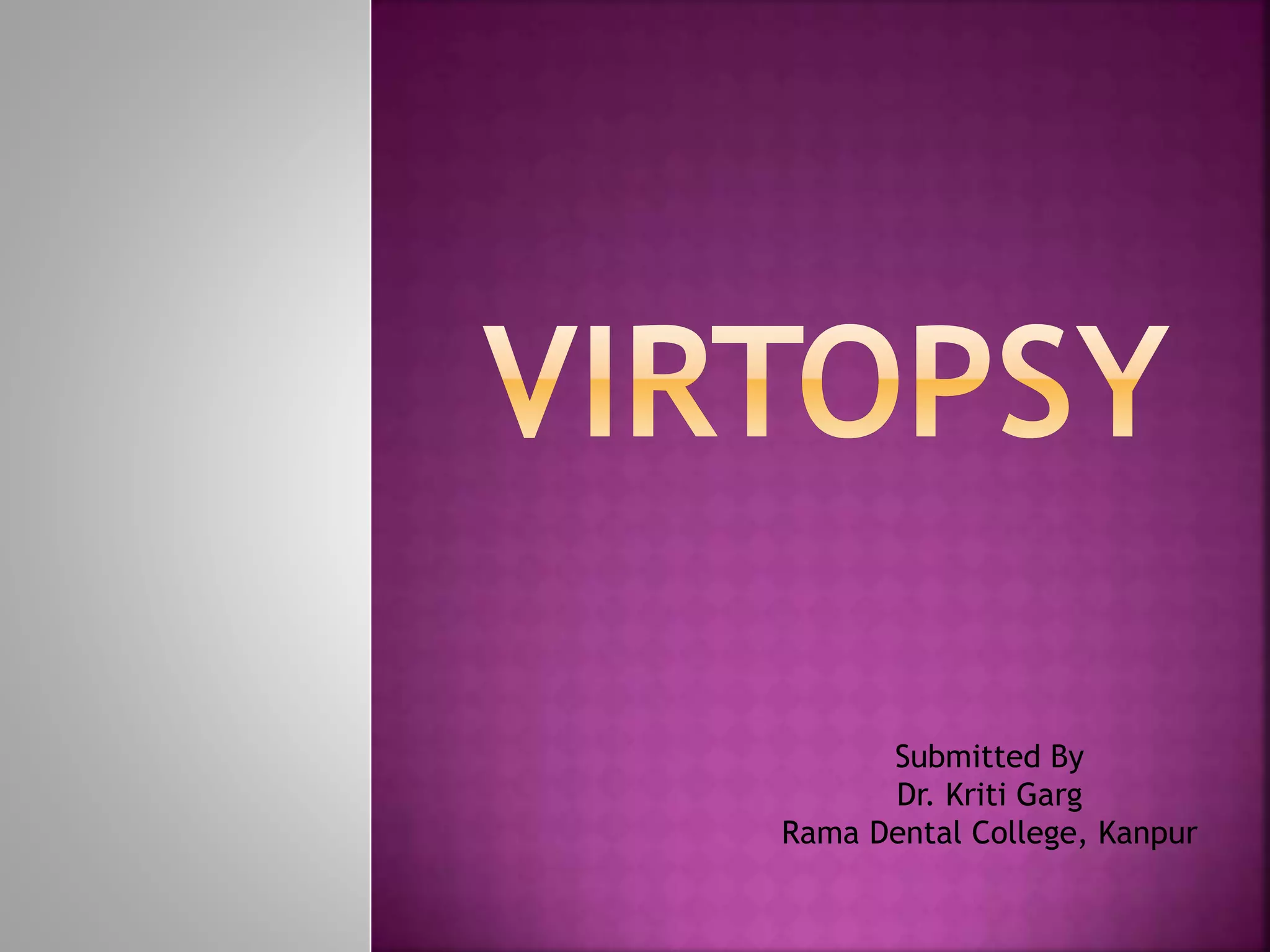 This document discusses Virtopsy, which is a non-invasive autopsy procedure that uses medical imaging techniques like CT scans and MRI instead of scalpels. It allows examiners to view the internal and external structures of the body in 3D without dissecting the corpse. The document outlines the various technologies used in Virtopsy like 3D surface scanning, MSCT, MRI, and digital photography. It notes the benefits of Virtopsy are that it avoids infecting wounds or mutilating the body, allows remote sharing of findings, and is less time-consuming. However, it also has limitations like an insufficient database for comparison and difficulty determining some pathological conditions or distinguishing ante- vs. post-mortem wounds.