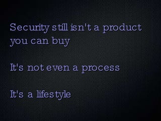 1) The document discusses the concepts of virtualization, virtualization security (VirtSec), open source virtualization, and cloud security (CloudSec). 2) It notes that virtualization changes the network stack and security approaches by putting the network inside machines and allowing live migration across VLANs. 3) It argues that security must focus on automation, configuration management, and avoiding proprietary lock-in to address challenges from virtualization like image sprawl and rapid redeployment.