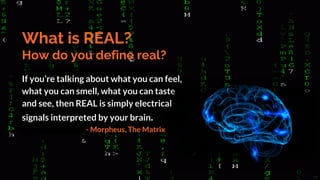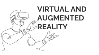 Virtual, augmented, and mixed reality technologies provide immersive digital experiences by overlaying images on a user's view of the real world. Virtual reality uses headsets to completely replace visual perception of the real world, while augmented reality enhances the real world with digital content. Mixed reality fuses elements of real and virtual worlds together. These technologies have applications in healthcare like medical training, education like virtual classrooms, and the military for simulation training. As the technologies advance, they have the potential to revolutionize many industries by improving productivity, work processes, and learning.