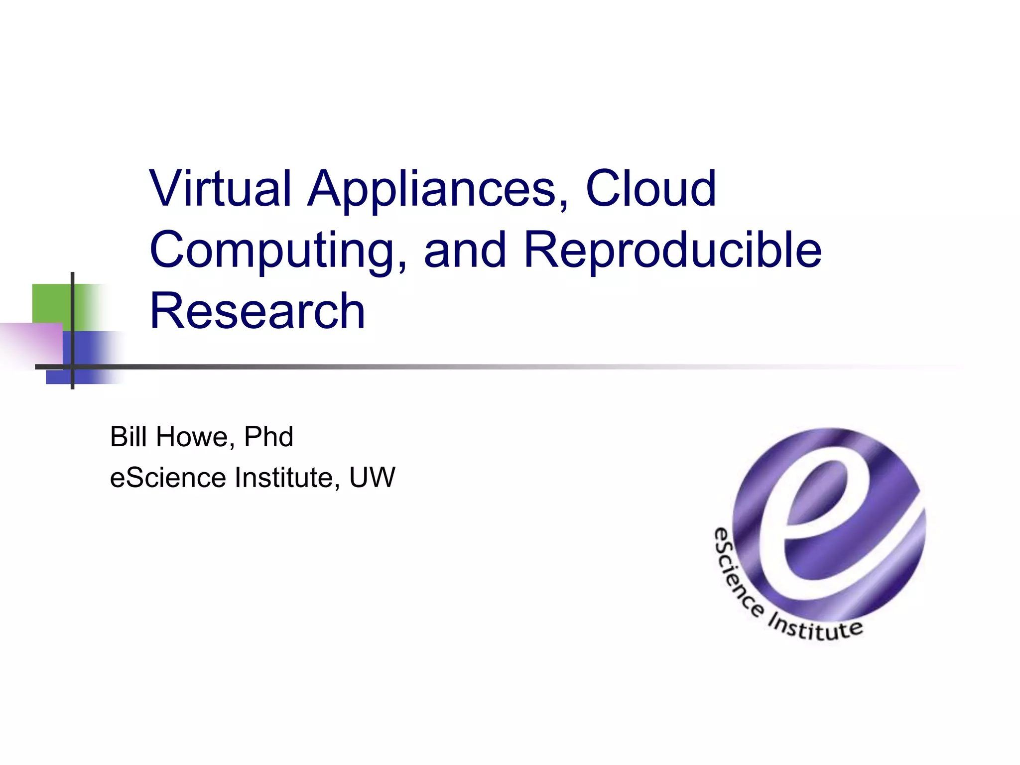 This document discusses the roles that cloud computing and virtualization can play in reproducible research. It notes that virtualization allows for capturing the full computational environment of an experiment. The cloud builds on this by providing scalable resources and services for storage, computation and managing virtual machines. Challenges include costs, handling large datasets, and cultural adoption issues. Databases in the cloud may help support exploratory analysis of large datasets. Overall, the cloud shows promise for improving reproducibility by enabling sharing of full experimental environments and resources for computationally intensive analysis.