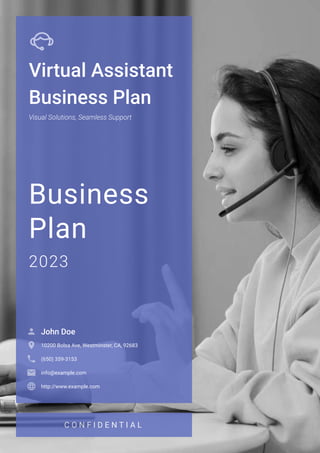 The document outlines a comprehensive business plan for a virtual assistant company, detailing market opportunities, services offered, marketing strategies, and financial projections for 2023. It includes sections on company overview, market analysis, and unique selling propositions, while emphasizing the importance of using AI-powered tools for business planning. The plan is designed to attract potential investors by highlighting the company's mission, operational strategies, and growth potential in the virtual assistance market.