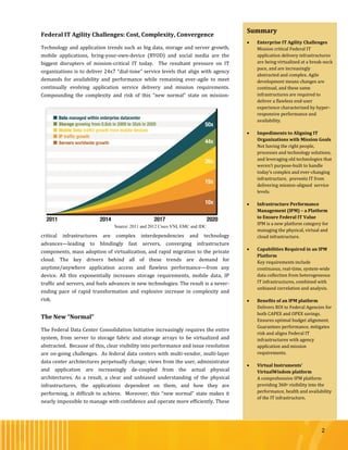 Federal IT infrastructures face increasing complexity as they are virtualized and migrated to private clouds at a rapid pace. This makes it difficult to ensure optimal performance and alignment with changing agency needs.