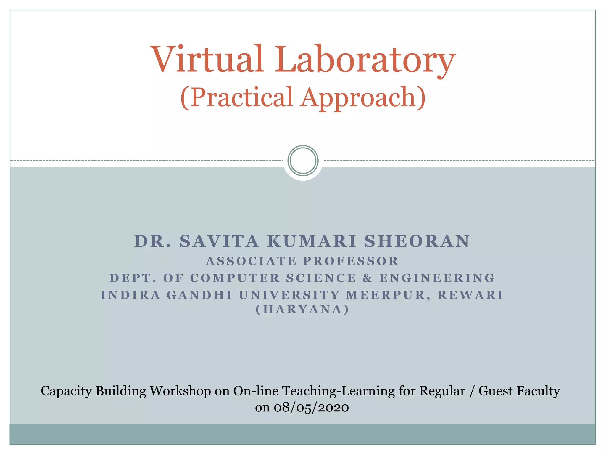 This document discusses virtual laboratories as an alternative to traditional hands-on laboratories. It describes different types of virtual labs like animated, simulation, and remote triggered labs. It outlines the advantages and disadvantages of each type. It also discusses India's Virtual Labs project launched by MHRD which provides free online access to 150 virtual labs across various STEM subjects from top Indian institutes. Key features highlighted are practicing at one's own pace, self-evaluation, and freedom to experiment without risk of damage. Requirements for running virtual labs and how to work with simulation and remote triggered labs are also summarized.
