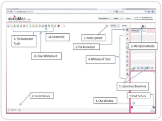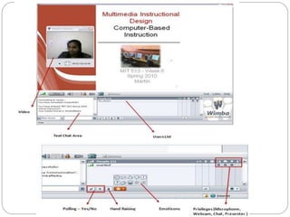 The document discusses virtual learning environments (VLEs) and compares features of three VLE platforms: Scribblar, Wimba Virtual Classroom, and WizIQ Virtual Classroom. Scribblar allows for real-time collaborative editing using a whiteboard, images, text chat and audio. Wimba Virtual Classroom enables live classes with audio, video, application sharing and content display. WizIQ Virtual Classroom provides synchronous learning with video, audio and text chat as well as recording and sharing of classes and presentations. The author argues these platforms can effectively support virtual learning for digital-age students.