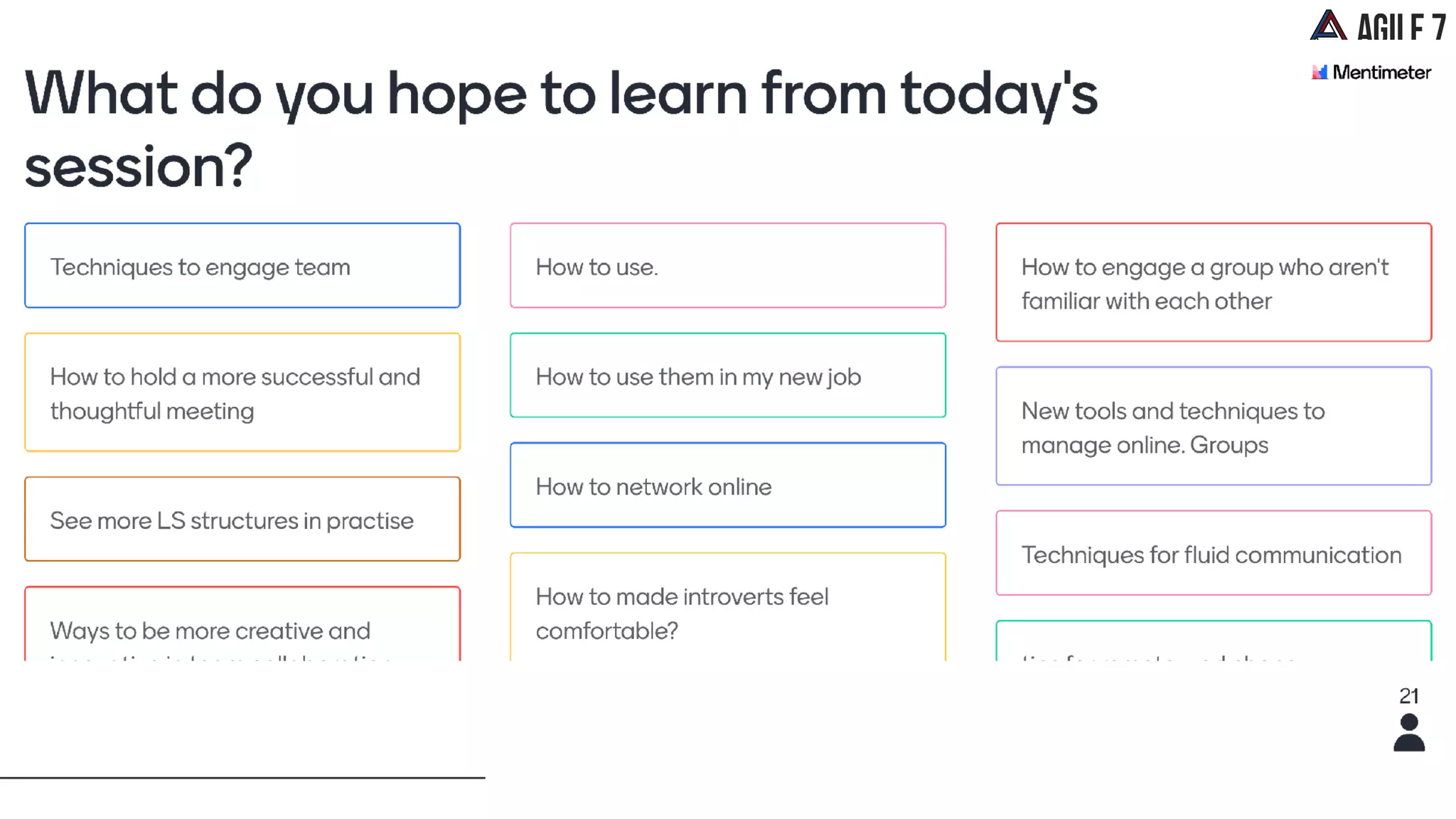 The document discusses virtual liberating structures (LS), which are tools designed to foster inclusive participation and innovation in remote settings. It outlines practices like '1-2-4-all' for idea generation and the importance of effective listening in collaboration. Additionally, it introduces experienced facilitators and offers insights into enhancing agility and effectiveness through structured interactions.
