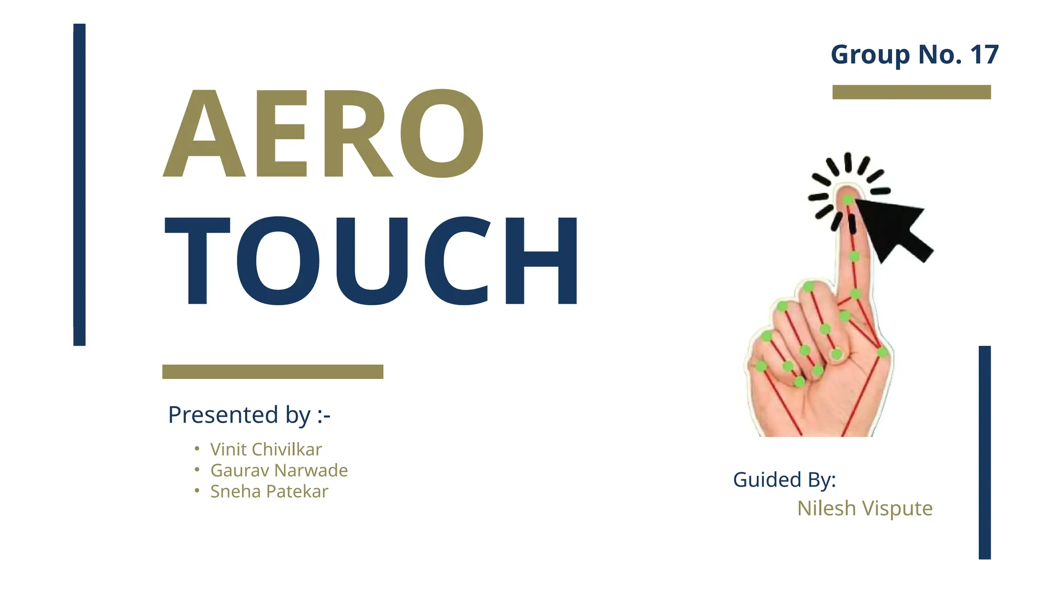 Aero Touch is a technology that enables touchless, gesture-based interactions for device control, utilizing advanced sensors to detect hand movements in real-time. It aims to improve accessibility, ergonomics, and hygiene in user interactions, particularly benefiting individuals with disabilities by providing a hands-free alternative to traditional mice. Future developments could integrate Aero Touch with other input methods and wearable technology, enhancing user convenience and interaction in smart environments.