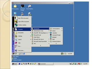 Virtual network computing (VNC) is a graphical desktop sharing system that uses the RFB protocol to remotely control another computer. It allows a user to view and interact with the desktop environment of a remote machine. A VNC system consists of a server, client, and communication protocol. The server exports the desktop display to clients which can then control the server. VNC works at the framebuffer level and transmits keyboard, mouse, and screen updates over a network connection.
