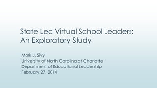 The exploratory study investigates the role of state-led virtual school (SLVS) leaders, highlighting the need for further research on their characteristics, leadership approaches, and the challenges they face. Findings indicate a reliance on prior experiences and informal knowledge, with an emphasis on student success and transformational leadership practices. The study suggests the development of comprehensive leadership training and certification programs to better prepare future SLVS leaders.
